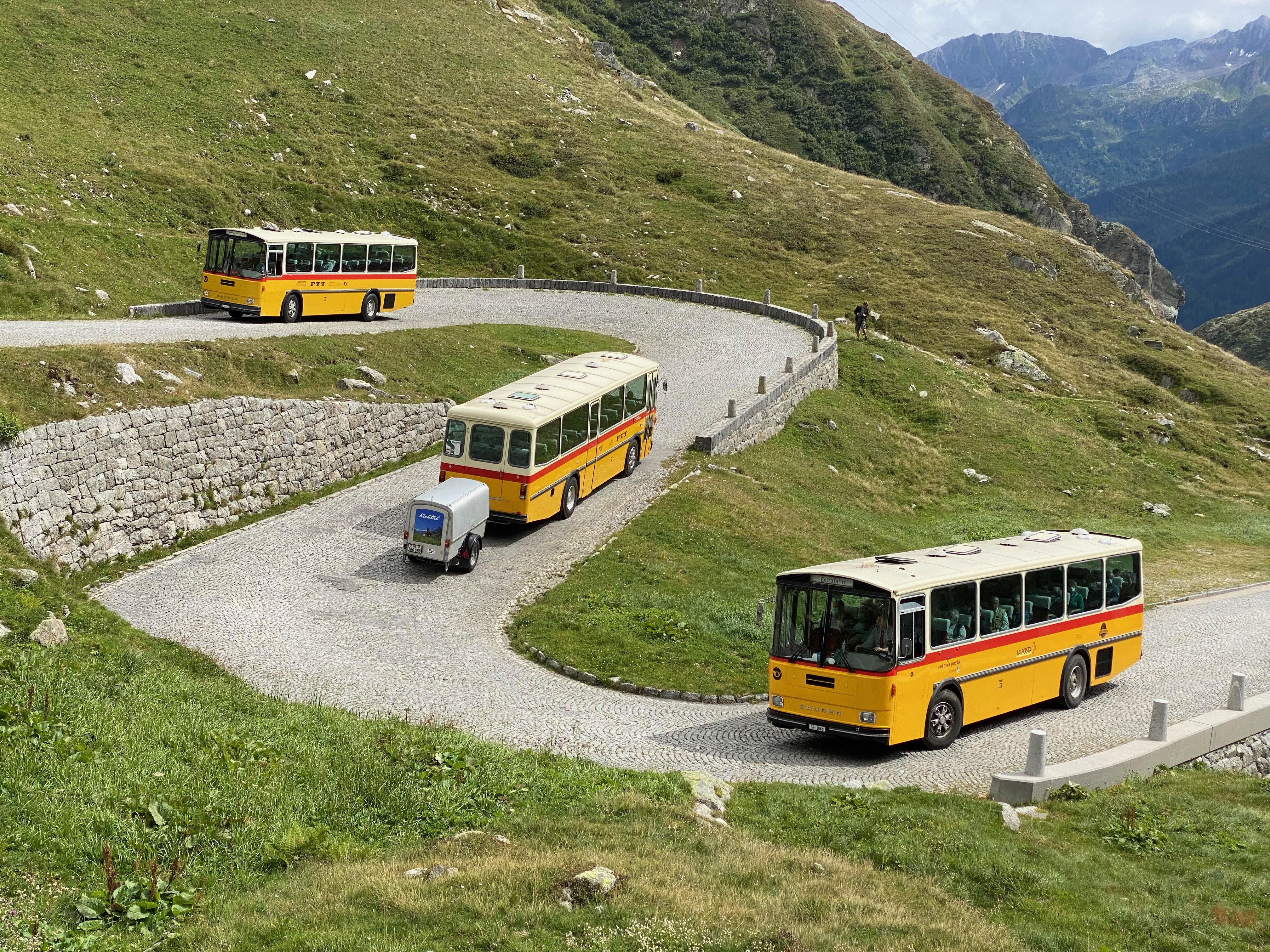 Das ehemalige Postauto im Originalzustand bietet Platz für 46 Personen